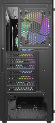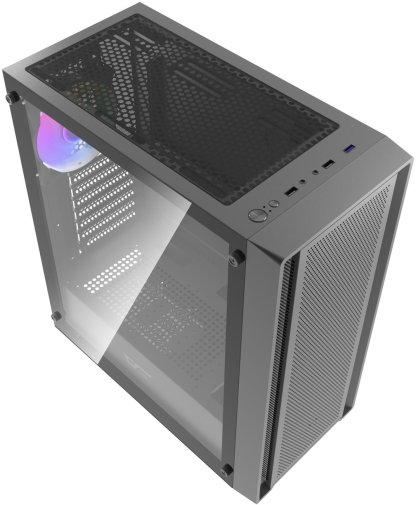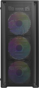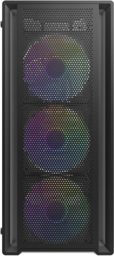 Передня панель I/O пропонує зручний доступ: один порт USB 3.0, два USB 2.0, роз'єми для аудіо та кнопки Reset і Power. Корпус доступний у чорному кольорі, що робить його класичним вибором для геймерських чи робочих збірок з акцентом на ефективне охолодження та сучасний вигляд.