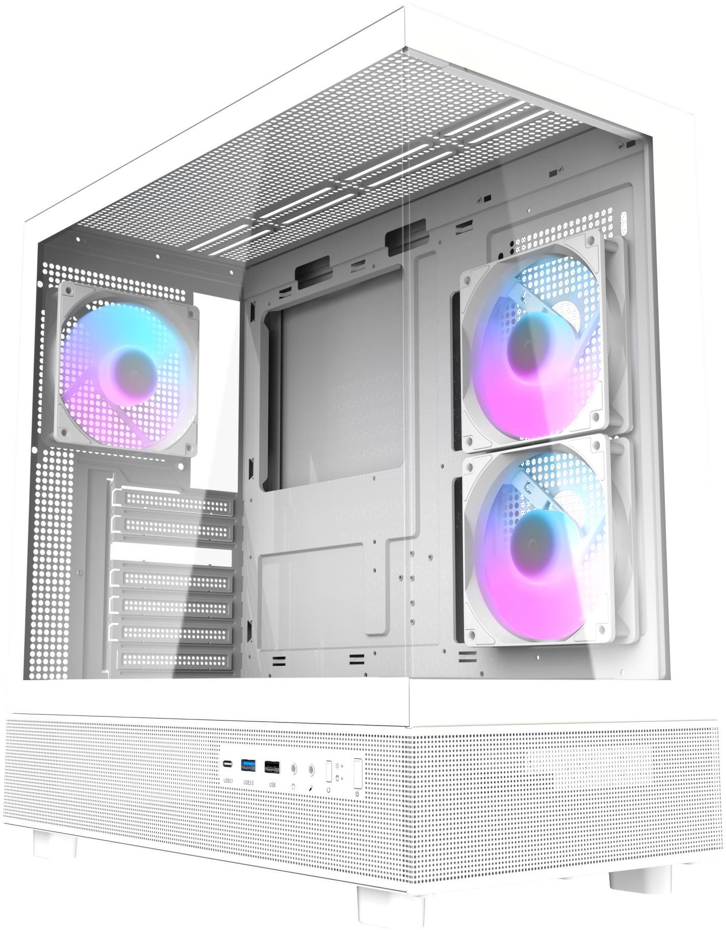 Корпус Dark Flash DPX90 поєднує сучасний стиль, інноваційний дизайн та високі технічні можливості, створюючи ідеальне середовище для будь-якої збірки ПК. Його 270° панорамний дизайн без стійки забезпечує майже повний огляд внутрішніх компонентів, дозволяючи демонструвати підсвічування, кулери та інші деталі системи під різними кутами. Такий дизайн створює ефект «плаваючих» компонентів і робить корпус центральним елементом будь-якої робочої або ігрової станції.