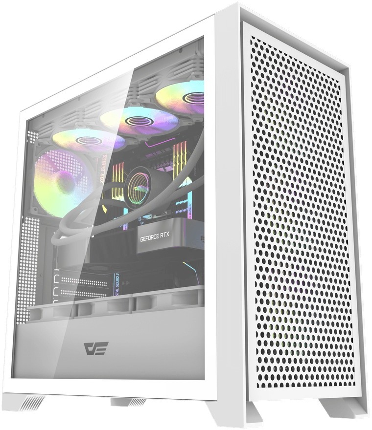 Корпус darkFlash DRX90 Mesh є сучасним ATX-рішенням для складання потужних комп'ютерних систем. Його головна особливість — магнітна передня панель, яка дозволяє легко замінювати скляну вставку на сітчасту (mesh) для покращення вентиляції. Бічна панель виконана з загартованого скла, що дає змогу демонструвати внутрішні компоненти, а загальний дизайн корпусу поєднує естетику та практичність.