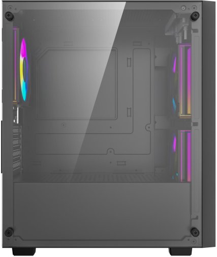 Бічна панель із загартованого скла, закріплена зручними гвинтами з накатанною головкою, забезпечує безпечний доступ до внутрішніх компонентів без необхідності використання інструментів. Це дозволяє легко обслуговувати, модернізувати або демонструвати збірку, водночас підкреслюючи її стильні елементи та RGB-підсвічування.
