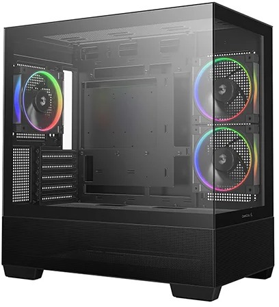 Deepcool CG380 3F — це стильний панорамний корпус форм-фактора Micro-ATX, який ідеально поєднує ефектний зовнішній вигляд і практичність у компактному розмірі. Завдяки подвійному загартованому склу він перетворює будь-яку збірку на справжній візуальний шедевр, дозволяючи милуватися компонентами з кількох сторін.