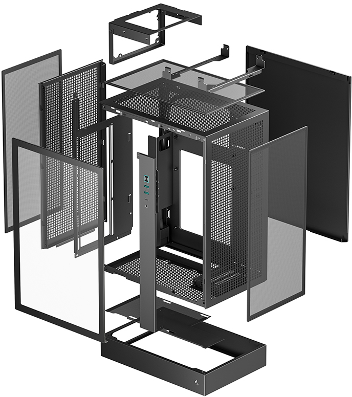 Завдяки сітчастим панелям з кількох боків і панелі з загартованого скла він забезпечує відмінний огляд компонентів і максимальний повітряний потік, роблячи збірку естетично привабливою та функціональною. Корпус виготовлений з ABS, SPCC і загартованого скла, має компактні розміри 290×195×424 мм і легку вагу лише 4,4 кг, що дозволяє легко розмістити його на столі чи в невеликому приміщенні.