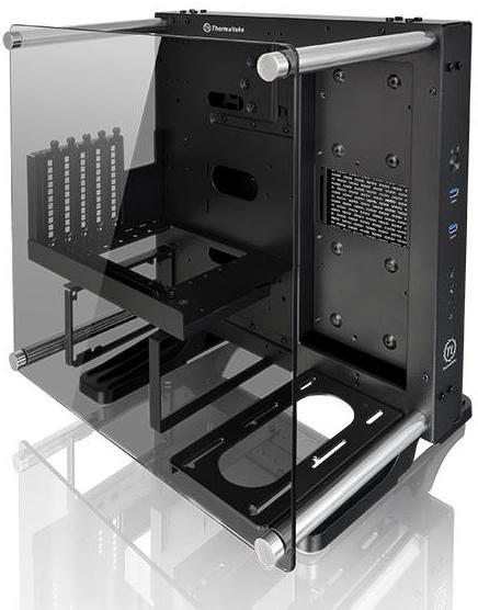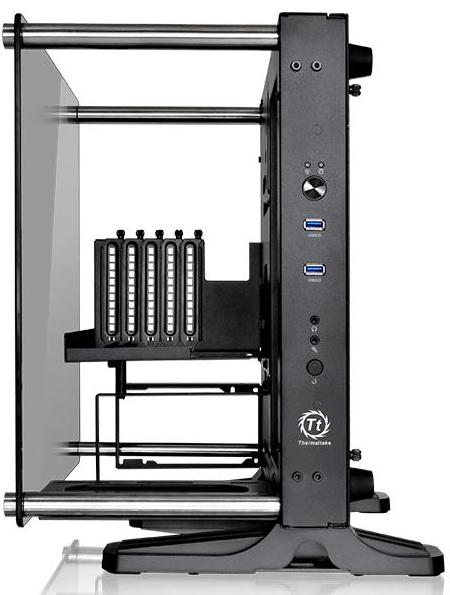 Thermaltake Core P1 TG - оригінальний корпус для системного блоку, який призначений для геймерів, які хочуть не тільки зібрати продуктивний ПК, але й створити унікальну ігрову атмосферу. Ергономічний дизайн представлений у класичному чорному кольорі, корпус тримається на спеціальних ніжках, які не лише забезпечують стійкість, але й не затримують гаряче повітря.
