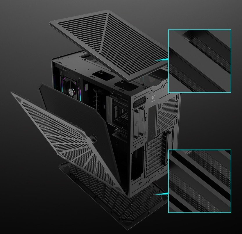 Корпус Neso P1 Pro обладнаний пиловими фільтрами зверху, збоку та знизу, що захищають компоненти від пилу, зберігаючи при цьому ефективну вентиляцію.
