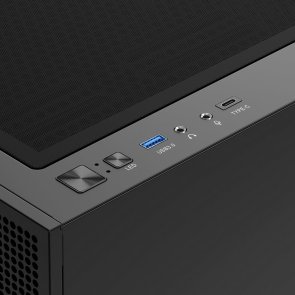 Інтерфейс вводу-виводу розташований на верхній панелі та включає порт USB 3.2 Gen 2 Type-C зі швидкістю передачі до 10 Гбіт/с, порт USB 3.0, аудіороз’єми та кнопки керування підсвічуванням вентиляторів. Завдяки продуманій конструкції та підтримці сучасних технологій, TALOS M3 MESH є ідеальним вибором для створення продуктивної та візуально привабливої системи.
