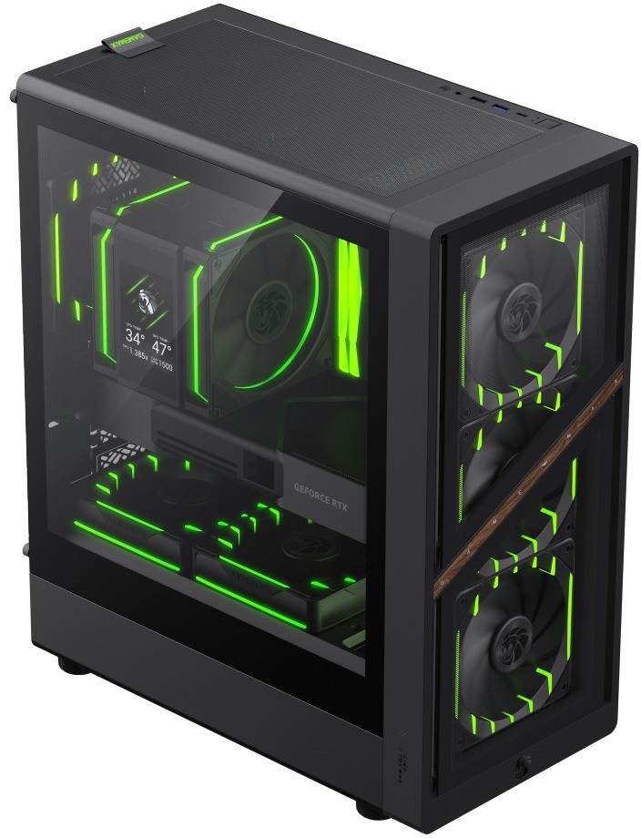 Корпус оснащений потужною системою охолодження: вже з коробки встановлено чотири 120-мм вентилятори з ARGB-підсвіткою та PWM-керуванням, а загалом можна розмістити до восьми вентиляторів такого розміру. Підтримуються радіатори водяного охолодження до 360 мм спереду, 240 мм зверху та 120 мм ззаду. Висота процесорного кулера може сягати 155 мм, а довжина відеокарти — до 330 мм, що дозволяє збирати продуктивні ігрові системи.