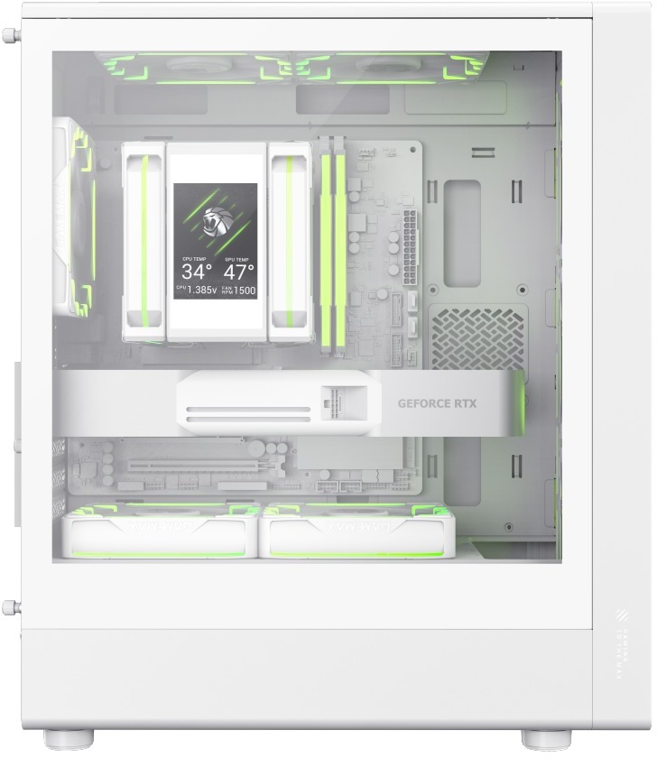 Корпус оснащений потужною системою охолодження: вже з коробки встановлено чотири 120-мм вентилятори з ARGB-підсвіткою та PWM-керуванням, а загалом можна розмістити до восьми вентиляторів такого розміру. Підтримуються радіатори водяного охолодження до 360 мм спереду, 240 мм зверху та 120 мм ззаду. Висота процесорного кулера може сягати 155 мм, а довжина відеокарти — до 330 мм, що дозволяє збирати продуктивні ігрові системи.