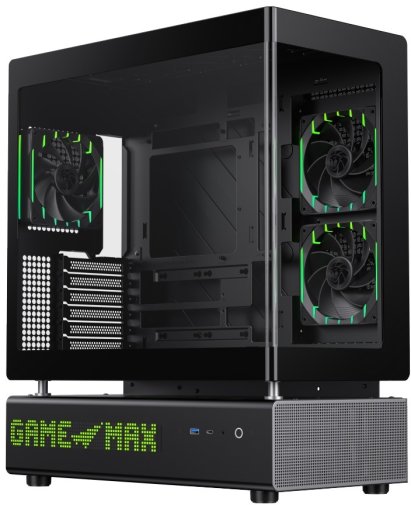 GAMEMAX N90 поєднує стиль, функціональність та інновації, що робить його ідеальним вибором для ентузіастів, які цінують ефектний дизайн з панорамним склом, потужну підсвітку та підтримку високопродуктивних компонентів, включаючи відеокарти довжиною до 415 мм та кулери процесора до 175 мм.