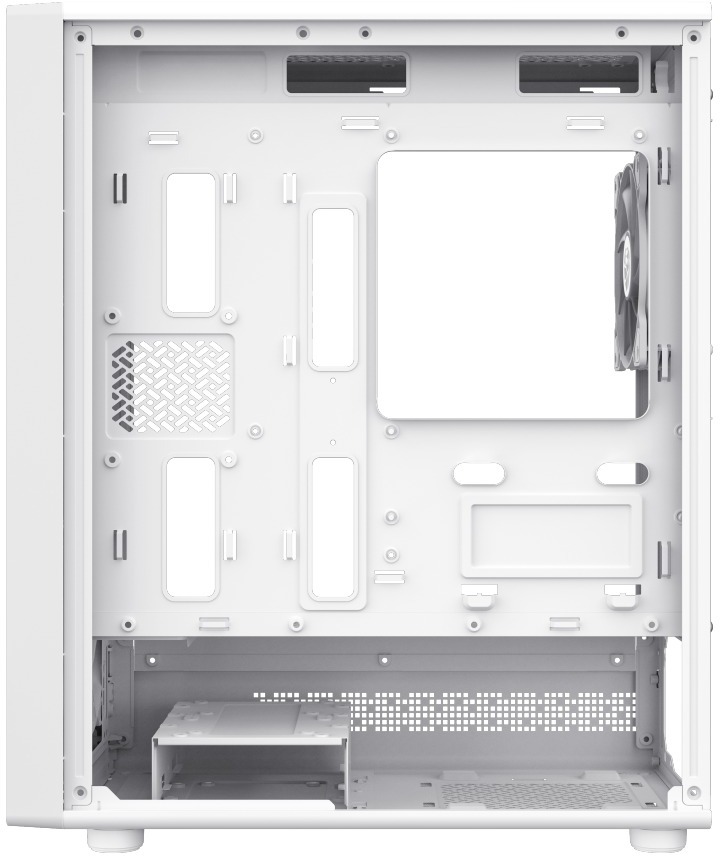 Одна з головних переваг Storm 2 MW — потужна система охолодження. Корпус підтримує встановлення до шести вентиляторів: три 120 мм спереду, два 120/140 мм зверху та один 120 мм ззаду. Для тих, хто обирає рідинне охолодження, передбачена підтримка радіаторів до 360 мм спереду та 240 мм зверху — це дозволяє зібрати серйозну систему СРО навіть у компактному корпусі. Відеокарти довжиною до 330 мм, процесорні кулери висотою до 155 мм і блоки живлення до 160 мм — усе це вміщується без проблем, тож Storm 2 MW сумісний із більшістю сучасних комплектуючих.