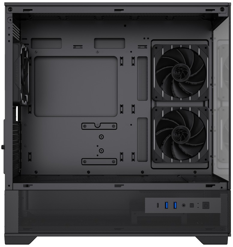 Внутрішній простір продумано для зручності складання: довжина відеокарти може сягати 410 мм, висота процесорного кулера – до 165 мм, а блок живлення – до 265 мм. Корпус підтримує два 3.5" та два 2.5" накопичувачі, а також має п’ять слотів розширення.