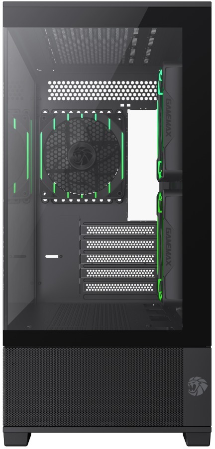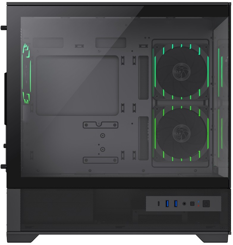 Зовнішні панелі доповнені пиловими сітками зверху та знизу, що допомагає підтримувати чистоту всередині. На бічній панелі розташовані два USB 3.2 Gen1, один USB Type-C Gen2, аудіороз’єм та кнопки керування живленням і підсвічуванням. GameMax VISTA 2 поєднує стильний зовнішній вигляд, хорошу вентиляцію та практичність, що робить його привабливим вибором для геймерів і ентузіастів, які цінують видимість своєї збірки.