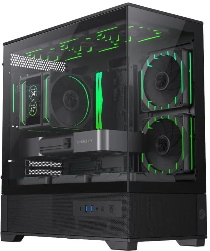 GameMax VISTA 2 — це компактний корпус форм-фактора Mini Tower, спеціально розроблений для материнських плат Micro-ATX та Mini-ITX. Його головною особливістю є 270-градусний панорамний огляд завдяки великій кількості загартованого скла: фронтальна панель поєднує скло з сіткою, а лівий бік повністю виконаний із прозорого скла. Такий дизайн дозволяє милуватися компонентами системи з різних ракурсів, підкреслюючи естетику сучасних збірок.