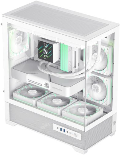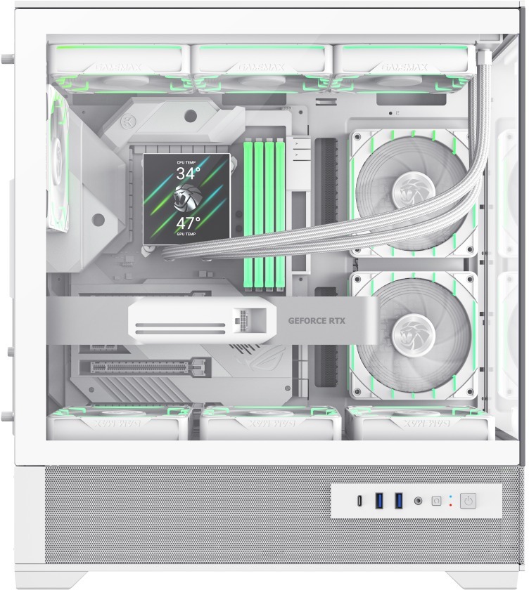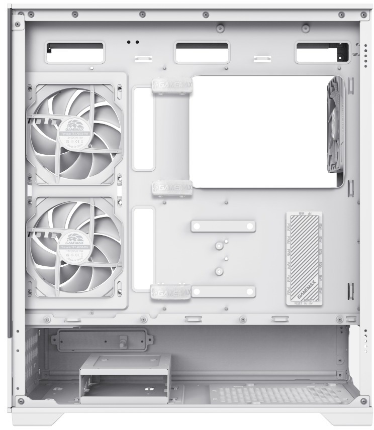Для стабільної роботи Gamemax Vista 2 підтримує як повітряне, так і рідинне охолодження, швидко розсіюючи тепло та забезпечуючи оптимальну температуру всередині корпусу. Окремий відсік для блока живлення підвищує ефективність охолодження та підтримує акуратність внутрішнього простору.