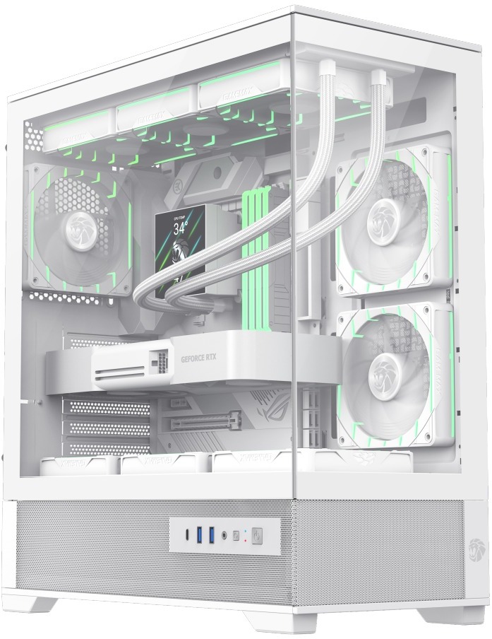 Gamemax Vista 2 створений для геймерів, які цінують панорамний огляд внутрішніх компонентів та ефективну роботу системи. Завдяки 270° загартованого скла спереду та зліва ви завжди бачите внутрішню частину корпуса, що додає естетики та дозволяє демонструвати компоненти.