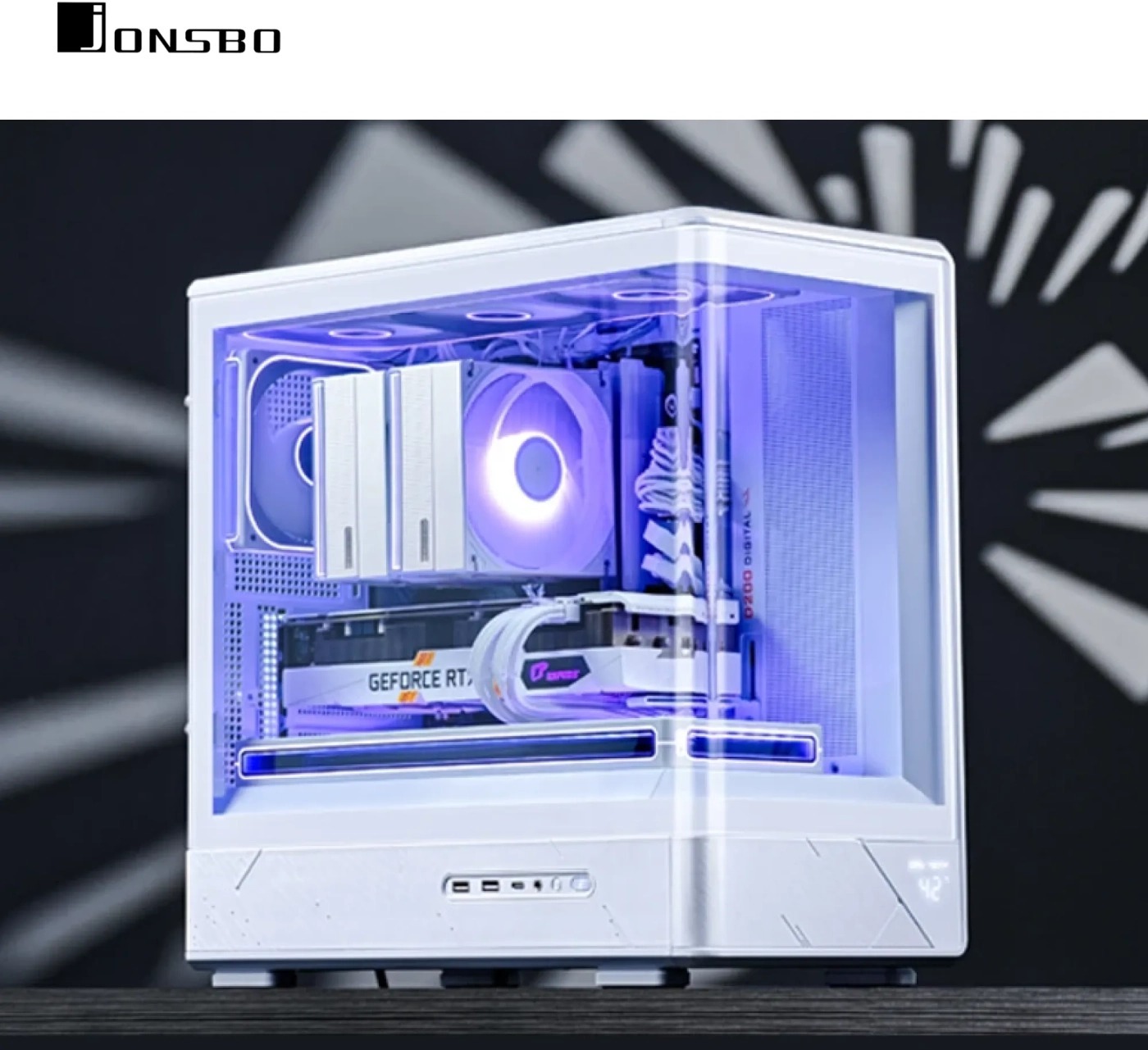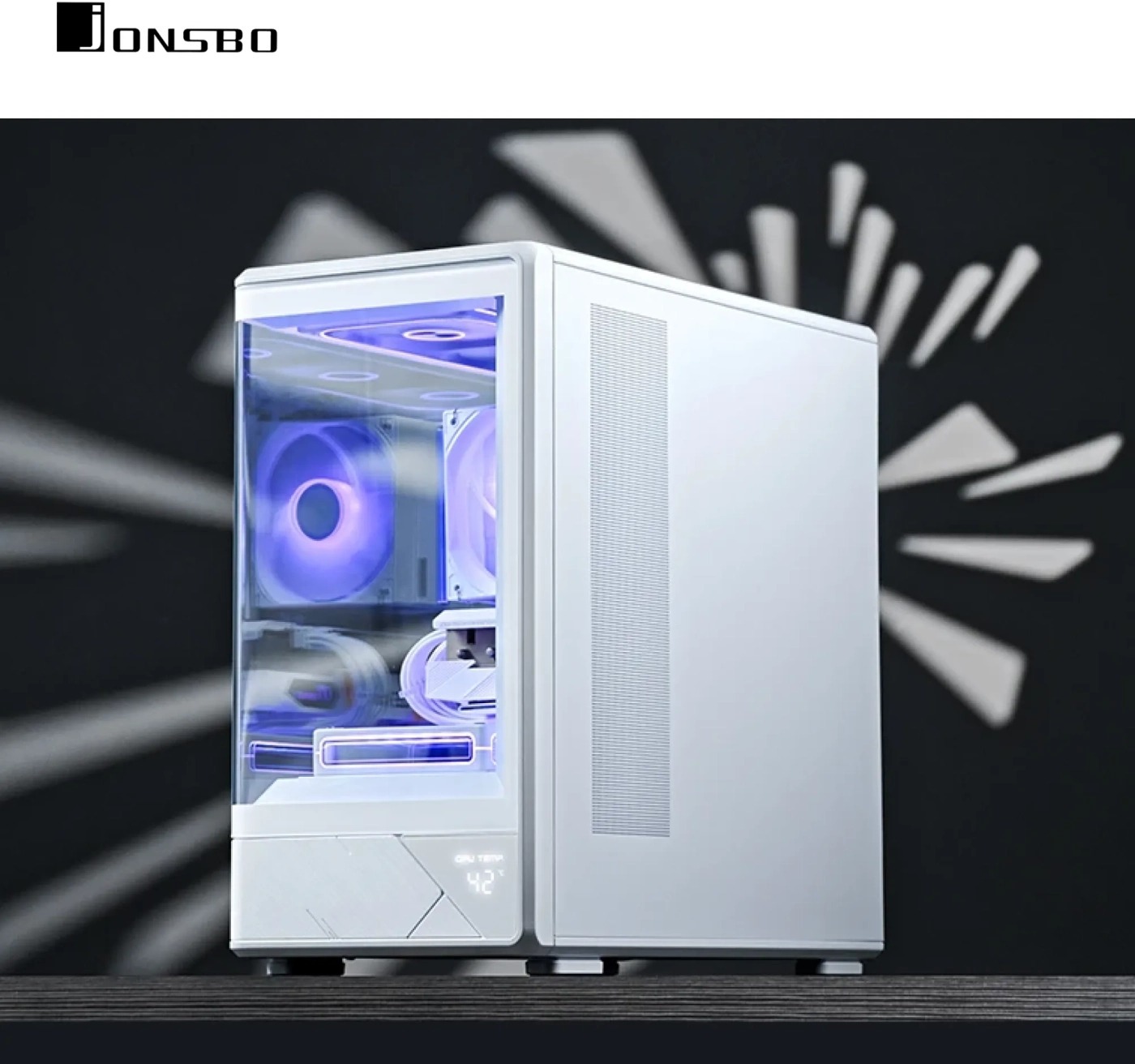 Корпус JONSBO D200 є ідеальним поєднанням естетики та функціональності, привертаючи увагу своїм витонченим дизайном та інноваційними рішеннями. Одним із ключових елементів зовнішнього вигляду є вигнуте цільне загартоване скло, яке забезпечує захопливий огляд внутрішніх компонентів. Це не лише дозволяє милуватися внутрішньою будовою, але й дає змогу легко стежити за чистотою та станом системи. Вбудований цифровий дисплей слугує важливим доповненням, дозволяючи користувачам у реальному часі відстежувати температуру всередині корпусу та своєчасно реагувати на зміни.
