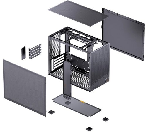 Всередині легко розміщуються материнські плати Mini-ITX та Micro-ATX. Висота процесорного кулера може сягати 164 мм, а довжина відеокарти – до 365 мм, що дозволяє використовувати більшість сучасних топових карт. Блок живлення ATX довжиною до 200 мм встановлюється у верхній частині, прихований кожухом, що додає акуратності збірці.