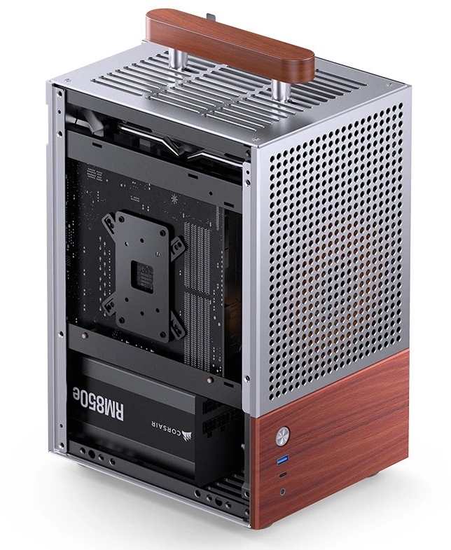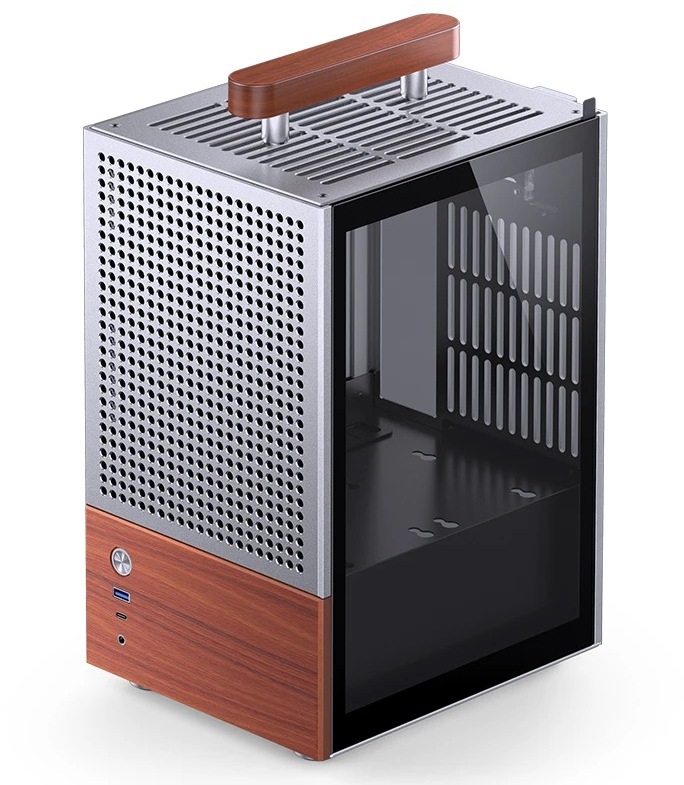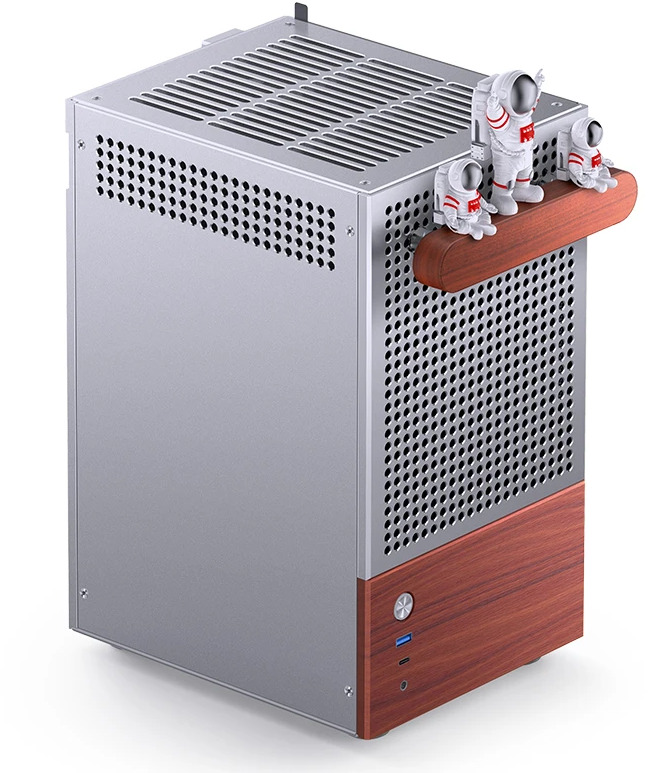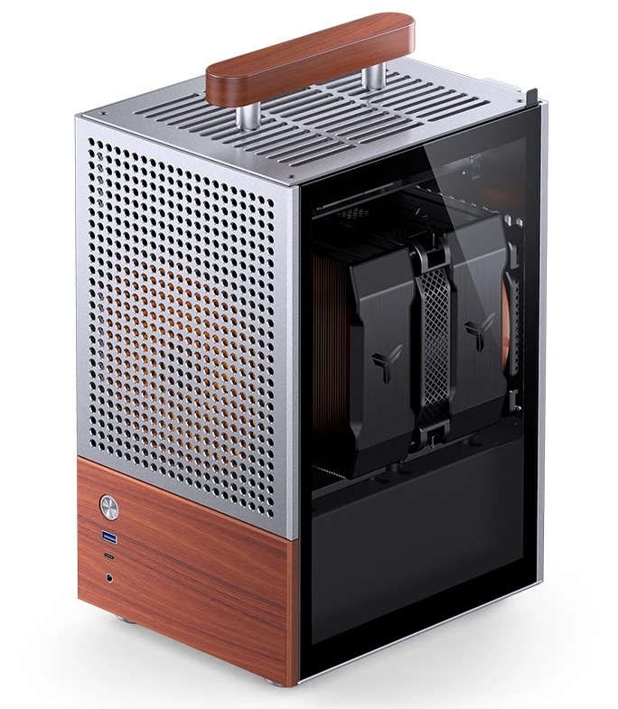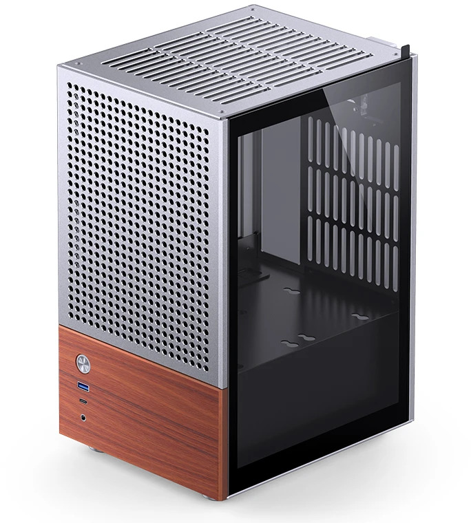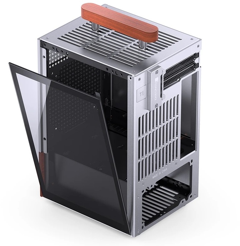 Корпус Jonsbo T6 – стильна основа для mini-ITX-збірок, де кожна деталь працює на естетику та правильний повітряний потік. Поєднання алюмінію, сталі й теплих дерев’яних акцентів формує преміальний образ, доречний і на робочому столі, і в оселі. Компактні розміри 185×223×332 мм не заважають раціональному компонуванню, а стримані лінії підкреслюють мінімалізм.