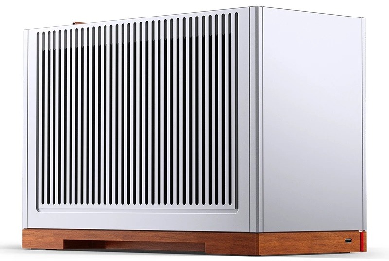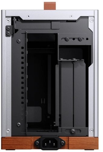 Jonsbo T9 — це компактний корпус для Mini-ITX систем, який вирізняється вдалим поєднанням сучасного промислового дизайну та натуральних матеріалів. Виготовлений переважно з 4-міліметрового алюмінієвого сплаву, доповненого сталевими елементами та масивною основою з чорного горіха, він створює враження преміального виробу. Невеликі габарити (155 × 325 × 224 мм) та вага близько 3,85 кг роблять його зручним як для стаціонарного розміщення, так і для перенесення.