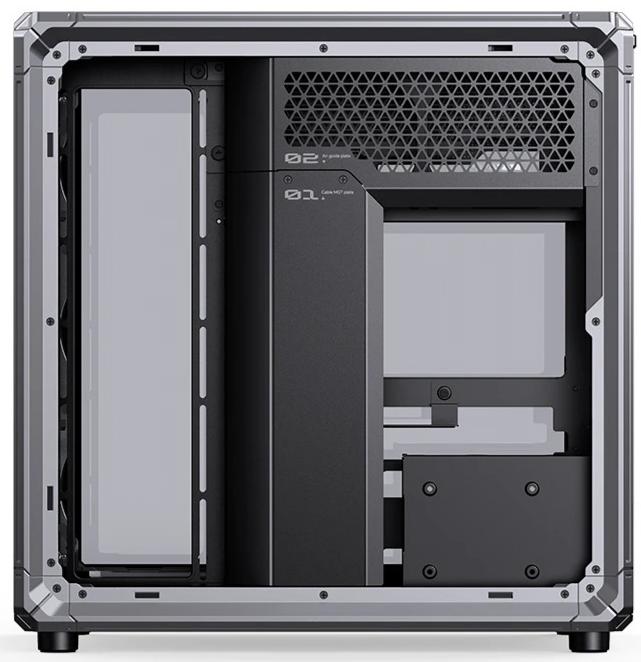Внутрішній простір оптимізований для повнорозмірних комплектуючих: підтримує материнські плати ATX, microATX та mini-ITX, відеокарти довжиною до 427 мм, процесорні кулери висотою до 176 мм і блоки живлення до 220 мм. Нижнє розміщення блоку живлення сприяє кращому охолодженню та ефективній циркуляції повітря. Просунута система кабель-менеджменту допомагає акуратно організувати дроти, зберігаючи охайний вигляд усередині навіть при складних конфігураціях.