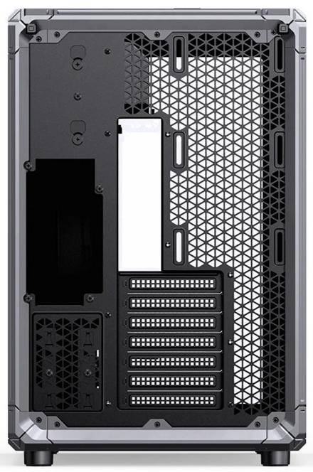Охолодження реалізовано максимально гнучко: зверху можна встановити до 3×120 мм або 2×140 мм вентиляторів, збоку — 3×120 мм, знизу — 3×120 мм, ззаду — 2×120 мм, а також передбачено підтримку додаткових вентиляторів ззаду. Це дозволяє створити потужний повітряний потік або встановити ефективну систему водяного охолодження, забезпечуючи стабільну роботу компонентів навіть під високим навантаженням.