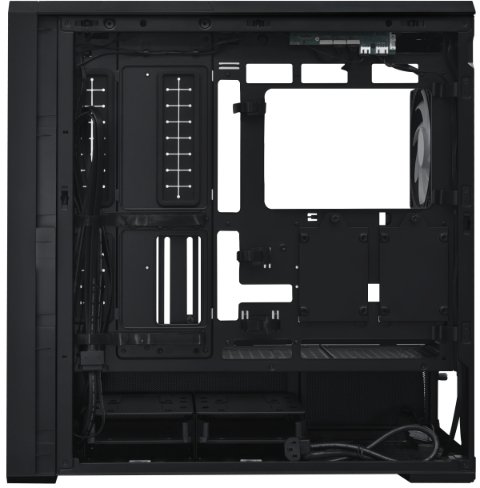 Передня панель корпусу не лише декоративна — вона має вбудоване ARGB-підсвічування з ефектом дзеркала безкінечності, яке можна регулювати через L-Connect 3, контролер L-Wireless, кнопки на панелі вводу/виводу або синхронізацію з материнською платою. Користувачі можуть обирати двозонне керування підсвічуванням, окремо налаштовуючи світло вентиляторів та дзеркала, або об’єднувати ефекти для цілісного дизайну.