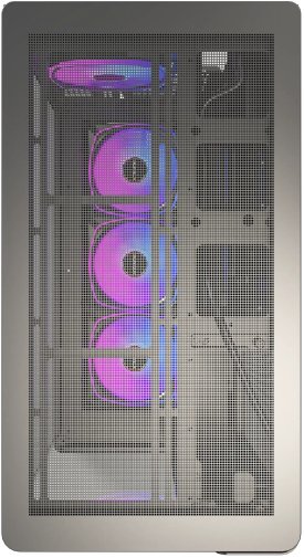 Завдяки панорамному склу корпус демонструє внутрішні компоненти з приголомшливою чіткістю, перетворюючи збірку на справжній витвір мистецтва. Двокамерна архітектура забезпечує ефективний потік повітря та приховане укладання кабелів, поєднуючи естетику та продуктивність.