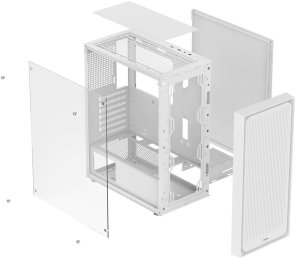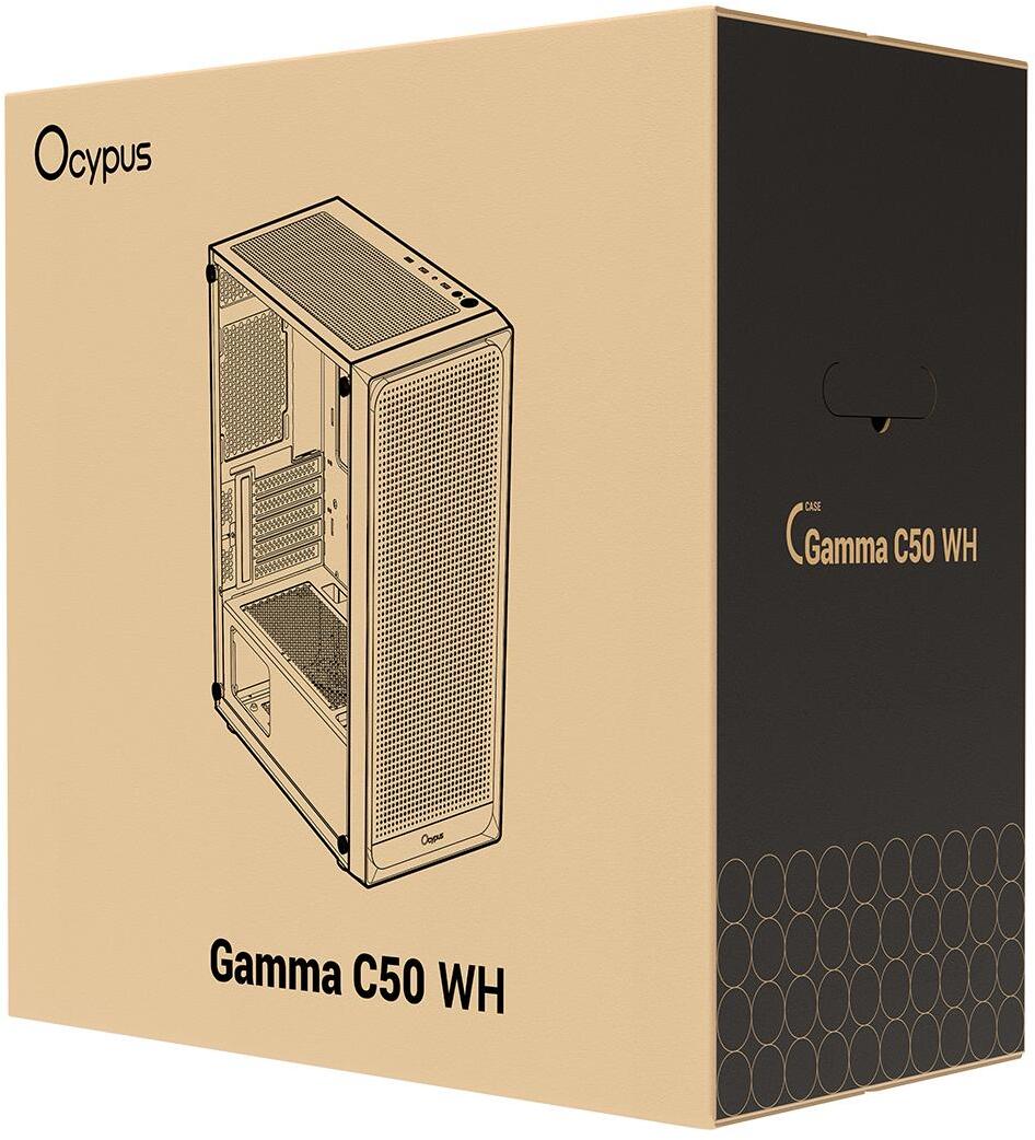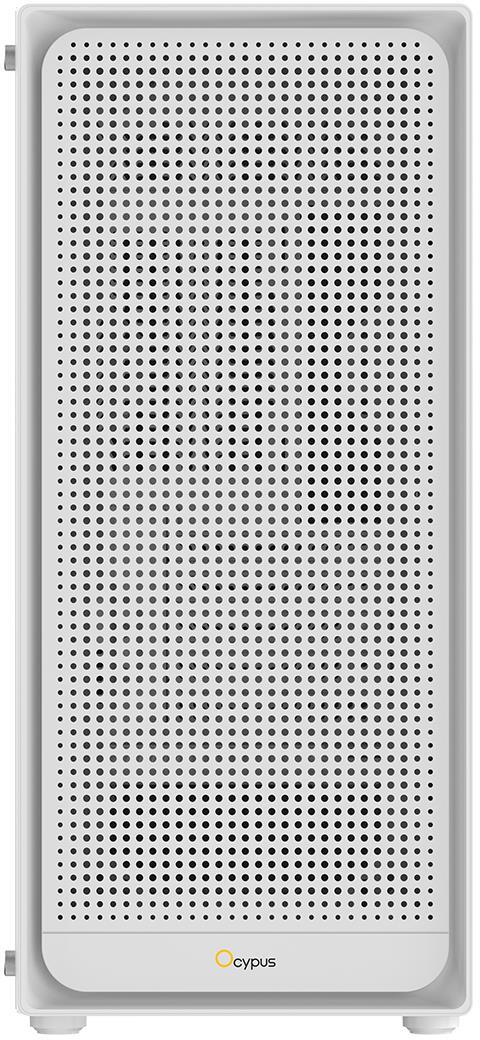 Корпус Ocypus Gamma C50 поєднує елегантний дизайн з високою функціональністю. Завдяки заокругленим прямокутним кутам і прямолінійним краям він виглядає стильно й сучасно. Передня панель у вигляді матричних круглих отворів не лише прикрашає зовнішній вигляд, а й забезпечує відмінне охолодження внутрішніх компонентів.