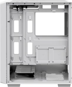 Конструкція корпусу продумана для створення позитивного тиску повітря — завдяки шести місцям під вентилятори (три зверху, два спереду та один ззаду), що забезпечують ефективну циркуляцію та стабільне охолодження компонентів. Для ще більшої продуктивності система підтримує встановлення радіаторів водяного охолодження до 360 мм спереду та до 240 мм зверху, що відкриває широкі можливості для ентузіастів кастомних збірок.