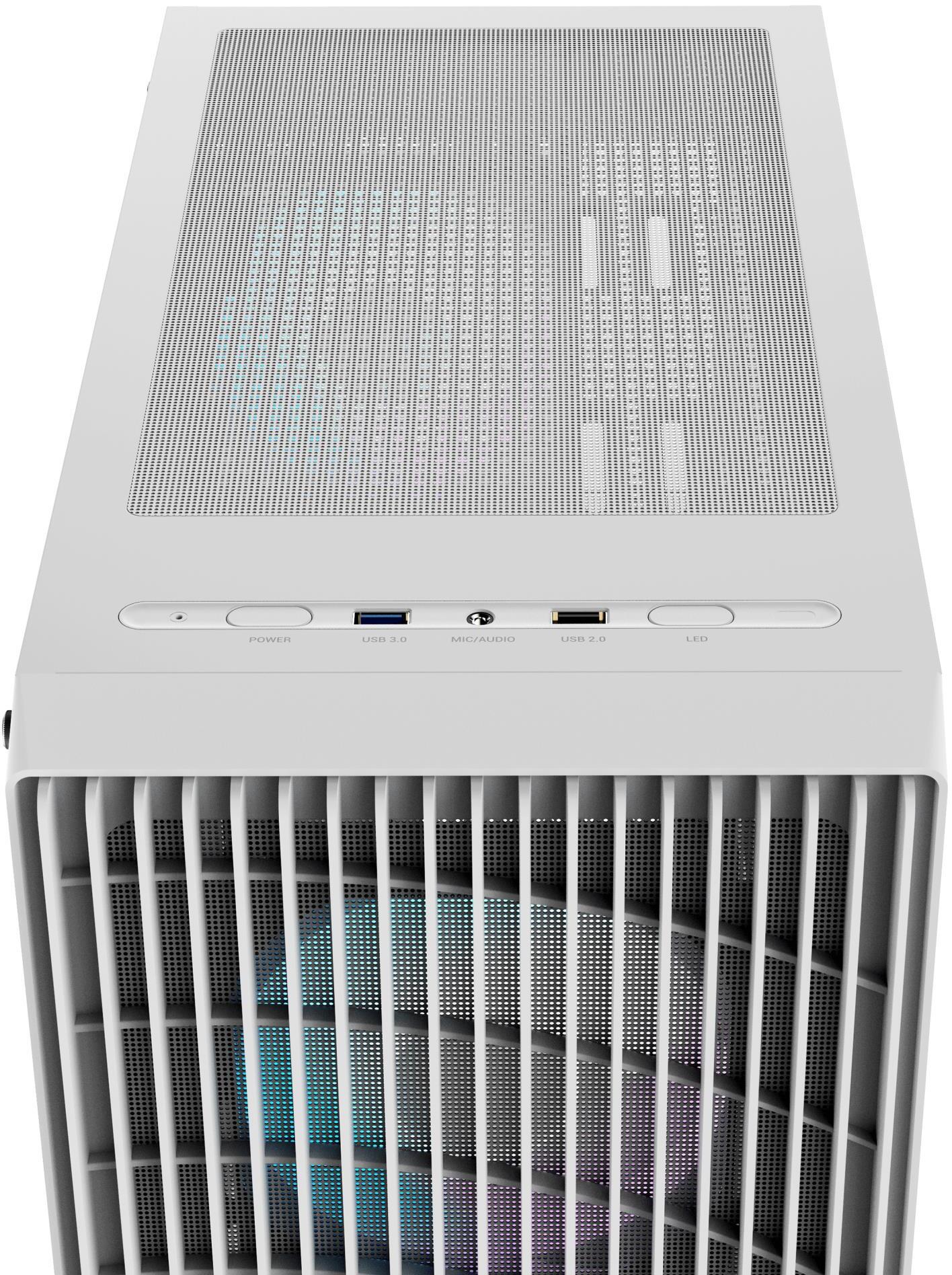 Усередині встановлено чотири попередньо змонтовані ARGB-вентилятори, які не лише забезпечують потужний потік повітря, а й створюють ефектне підсвічування, додаючи системі індивідуальності. Корпус підтримує радіатори водяного охолодження розміром до 360 мм спереду, до 280 мм зверху та 120 мм ззаду, а також повітряні кулери висотою до 163 мм. Це дозволяє легко підібрати оптимальну систему охолодження відповідно до ваших потреб.