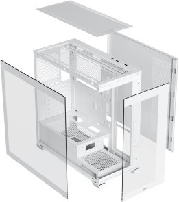 Цей mid-tower корпус виготовлений з високоякісних матеріалів, включаючи сталь SPCC, ABS та загартоване скло, що забезпечує стійкість до механічних навантажень і легкість у догляді, з габаритами, оптимізованими для розміщення в міських умовах без зайвого зайняття місця. Відсутність блоку живлення в комплекті (No PSU) дозволяє гнучко обрати джерело енергії, сумісне з ATX-стандартом, оптимізуючи бюджет і сумісність для індивідуальних конфігурацій, тоді як прозора бокова стінка з загартованого скла демонструє внутрішні компоненти, підкреслюючи естетику збірки з динамічним освітленням.
