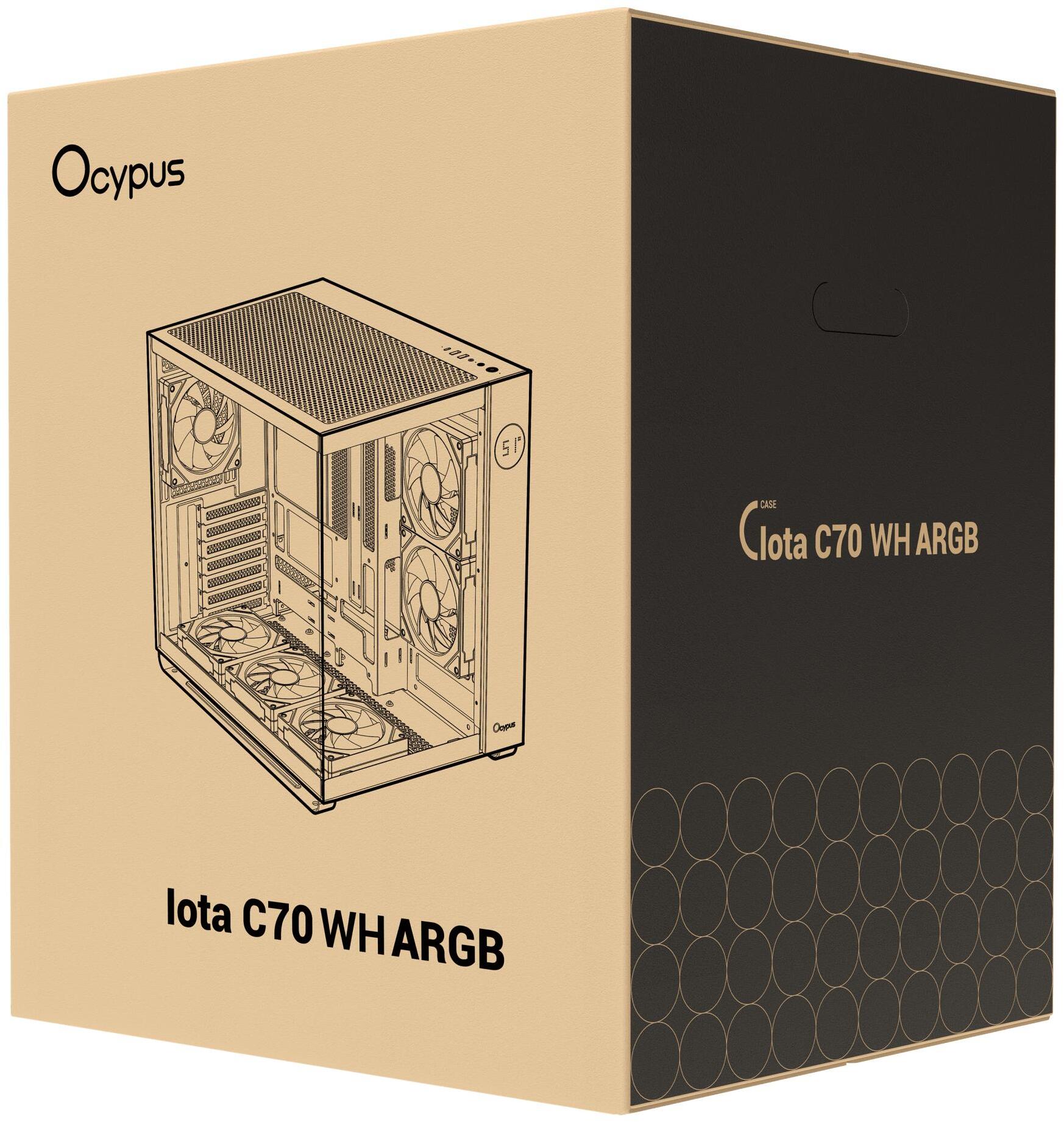 Корпус Ocypus Iota C70 ARGB підтримує новітні материнські плати із задніми роз’ємами вводу/виводу, завдяки чому внутрішній простір виглядає максимально охайно, без видимих кабелів і з ідеально організованим виглядом. Його конструкція забезпечує високу продуктивність охолодження — усередині є достатньо місця для встановлення як повітряних кулерів, так і потужних систем водяного охолодження. Корпус постачається з шістьма попередньо встановленими високопродуктивними ARGB-вентиляторами, які гарантують ефективне відведення тепла навіть під час максимального навантаження.