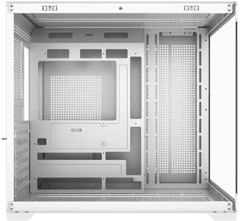 Корпус підтримує материнські плати формату ATX, M-ATX та ITX, включно з BTF-сумісними платами, що дає змогу приховати більшість кабелів і створити максимально акуратний інтер’єр без зайвих дротів. Широкий корпус завширшки 285 мм забезпечує достатньо простору для встановлення високопродуктивних компонентів і сумісність із сучасними системами охолодження.