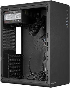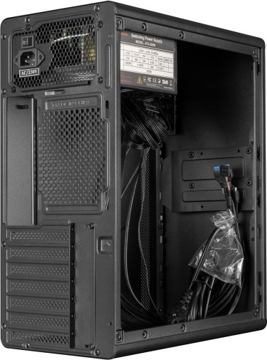 Вбудований блок живлення на 500 Вт з вентилятором 120 мм гарантує стабільне живлення для середньопродуктивних систем, включаючи базові ігрові конфігурації без потужної відеокарти. Корпус має місце для вентилятора 120 мм ззаду, відсіки для HDD/SSD та хорошу кабель-менеджмент систему, що сприяє ефективному охолодженню та акуратному вигляду всередині.