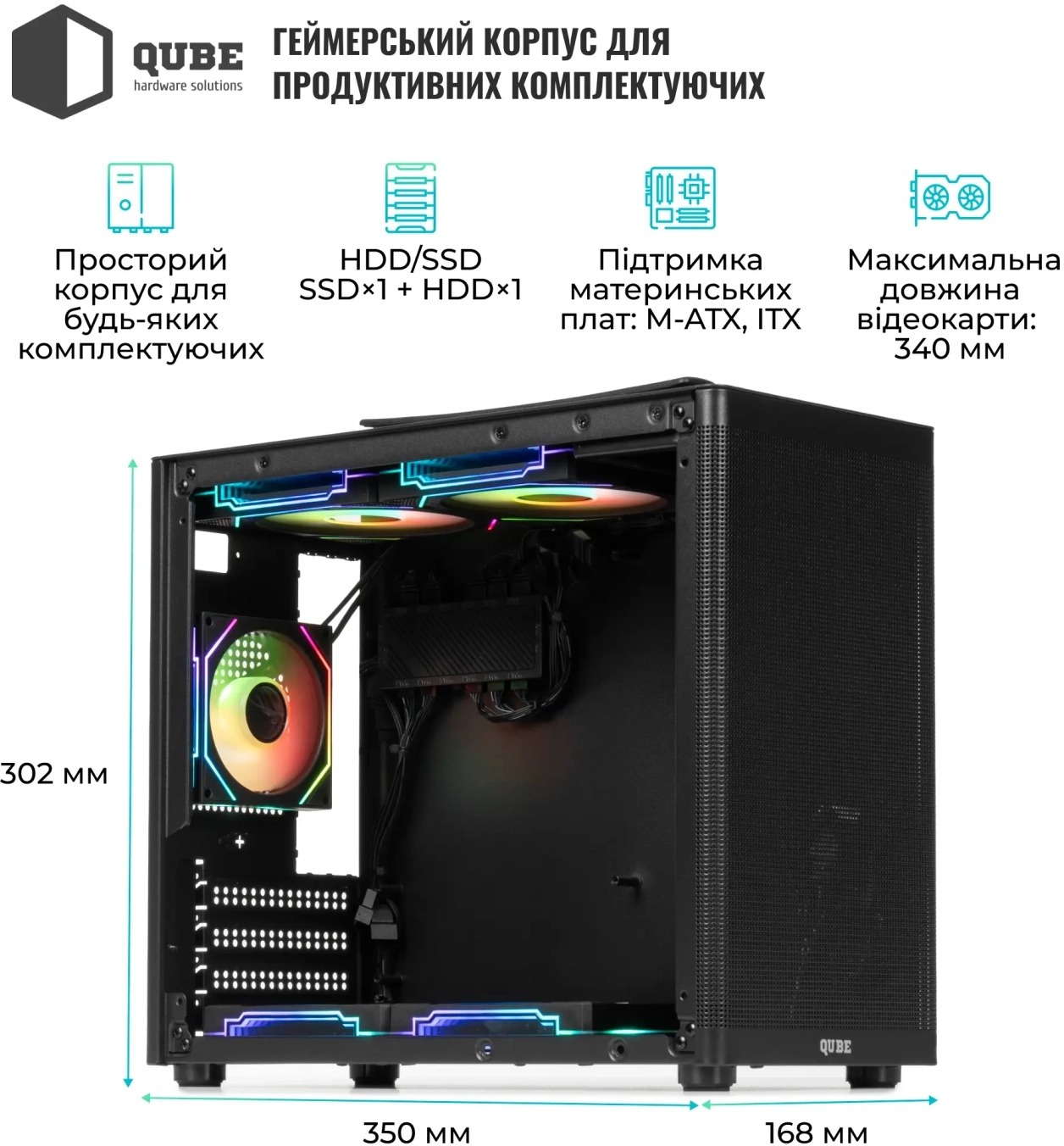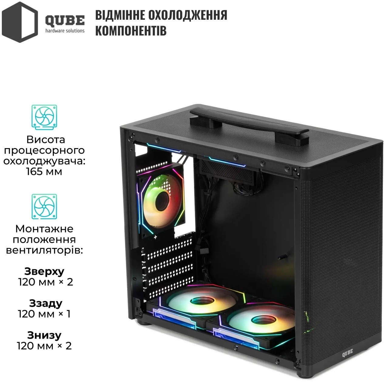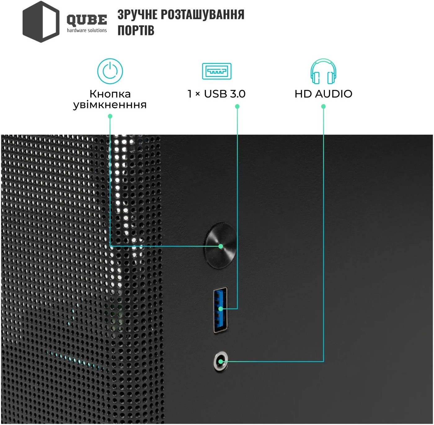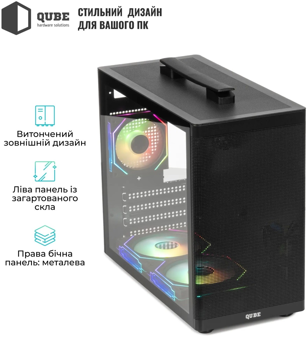 Qube Bring — це компактний mATX корпус формфактора Mini Tower, призначений для геймерів та ентузіастів, які прагнуть поєднати стильний дизайн з ефективним охолодженням в обмеженому просторі. Він створений для оптимального охолодження та яскравої демонстрації вашої збірки. Повністю сітчаста передня панель у поєднанні з ARGB-вентиляторами забезпечує відмінний потік повітря та ефектне підсвічування. Преміальне загартоване скло з посиленими кріпленнями гарантує безпеку та зручний доступ до компонентів.