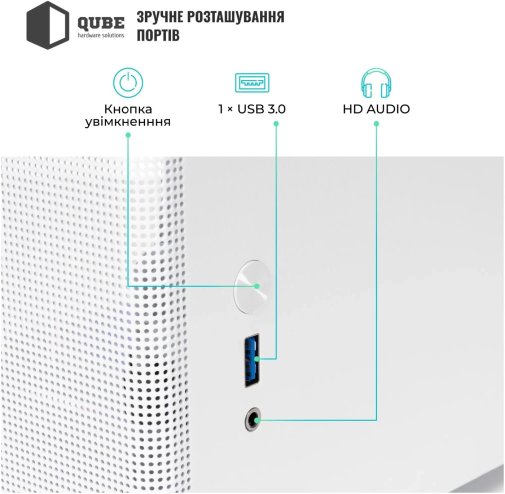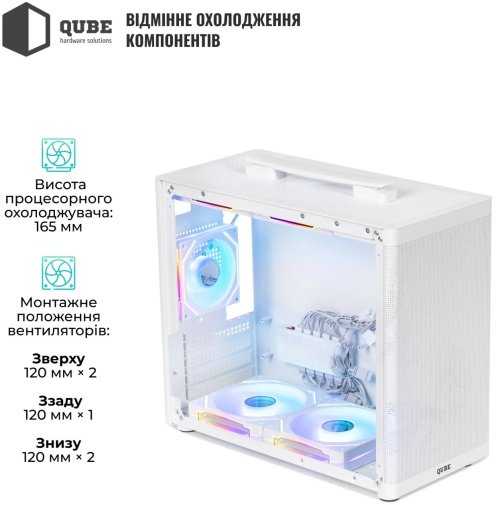 Qube Bring — це компактний mATX корпус формфактора Mini Tower, призначений для геймерів та ентузіастів, які прагнуть поєднати стильний дизайн з ефективним охолодженням в обмеженому просторі. Він створений для оптимального охолодження та яскравої демонстрації вашої збірки. Повністю сітчаста передня панель у поєднанні з  ARGB-вентиляторами забезпечує відмінний потік повітря та ефектне підсвічування. Преміальне загартоване скло з посиленими кріпленнями гарантує безпеку та зручний доступ до компонентів.