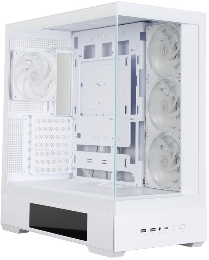 Передня панель оснащена двома USB 3.0 портами та одним USB Type-C для швидкого підключення периферії. Внутрішній простір дозволяє встановлювати материнські плати ATX, mATX чи Mini-ITX, відеокарти до 420 мм, кулер для процесора до 165 мм, зручне керування кабелями та слотами розширення до 7 штук.