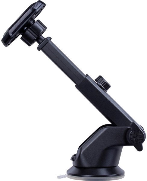 У стриманому чорному кольорі з матовим покриттям він виглядає лаконічно й сучасно — не відриває від дороги й ідеально вписується в будь-який салон. Телескопічна ніжка з регулюванням довжини дозволяє встановити смартфон на оптимальній відстані від очей — не треба нахилятися до екрана чи відволікатися від дороги. Поворотна голова на 360° і шарнір дають можливість повернути телефон у будь-яке положення — горизонтально для відео чи вертикально для навігації, без жодних люфтів.