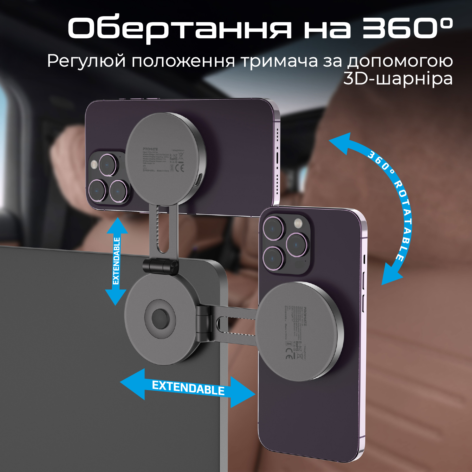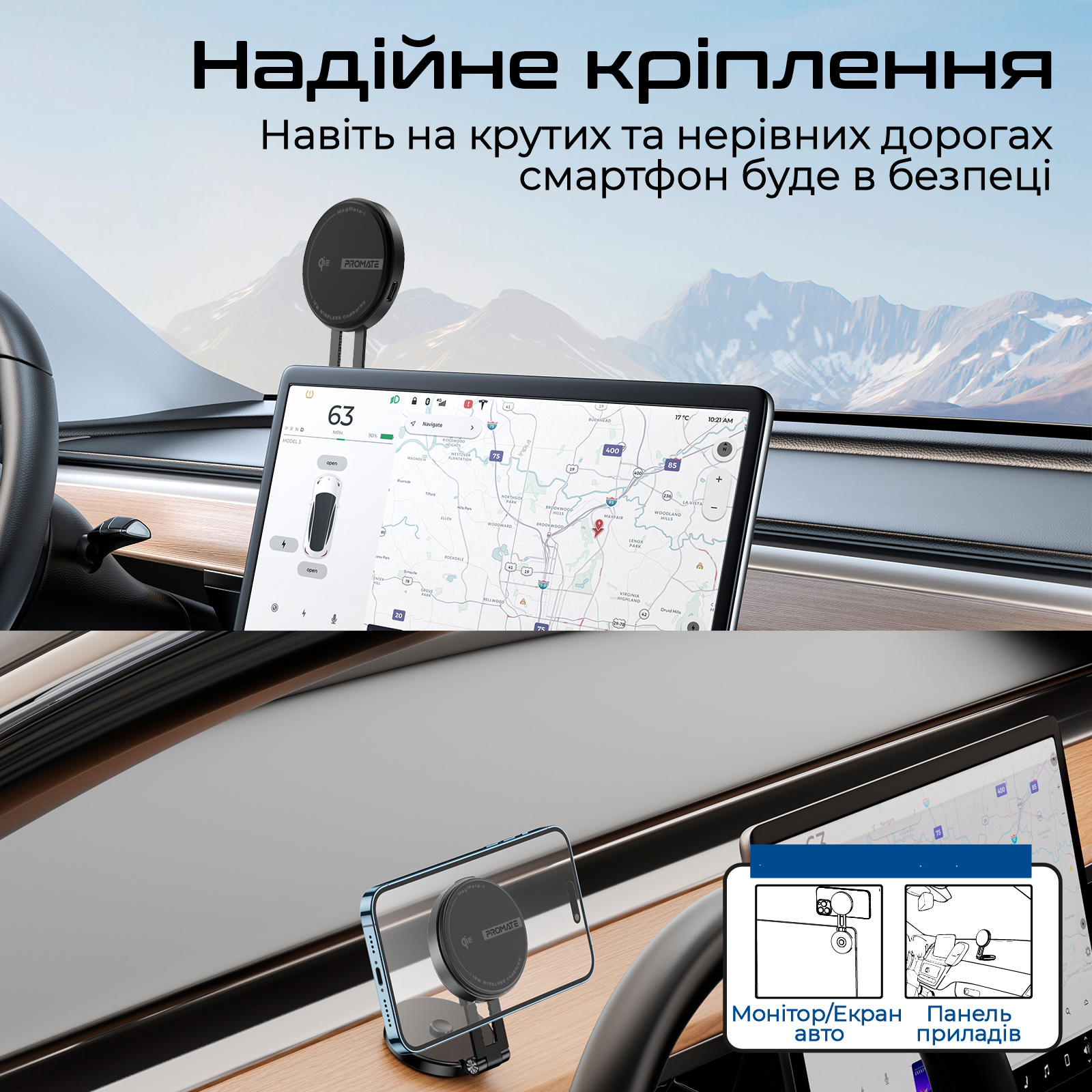 Незалежно від того, чи їдете ви на роботу, чи подорожуєте країною, MagMate-1 від Promate перетворює вашу панель приладів на сучасний командний центр із безпроблемною зарядкою 15 Вт та підтримкою MagSafe.