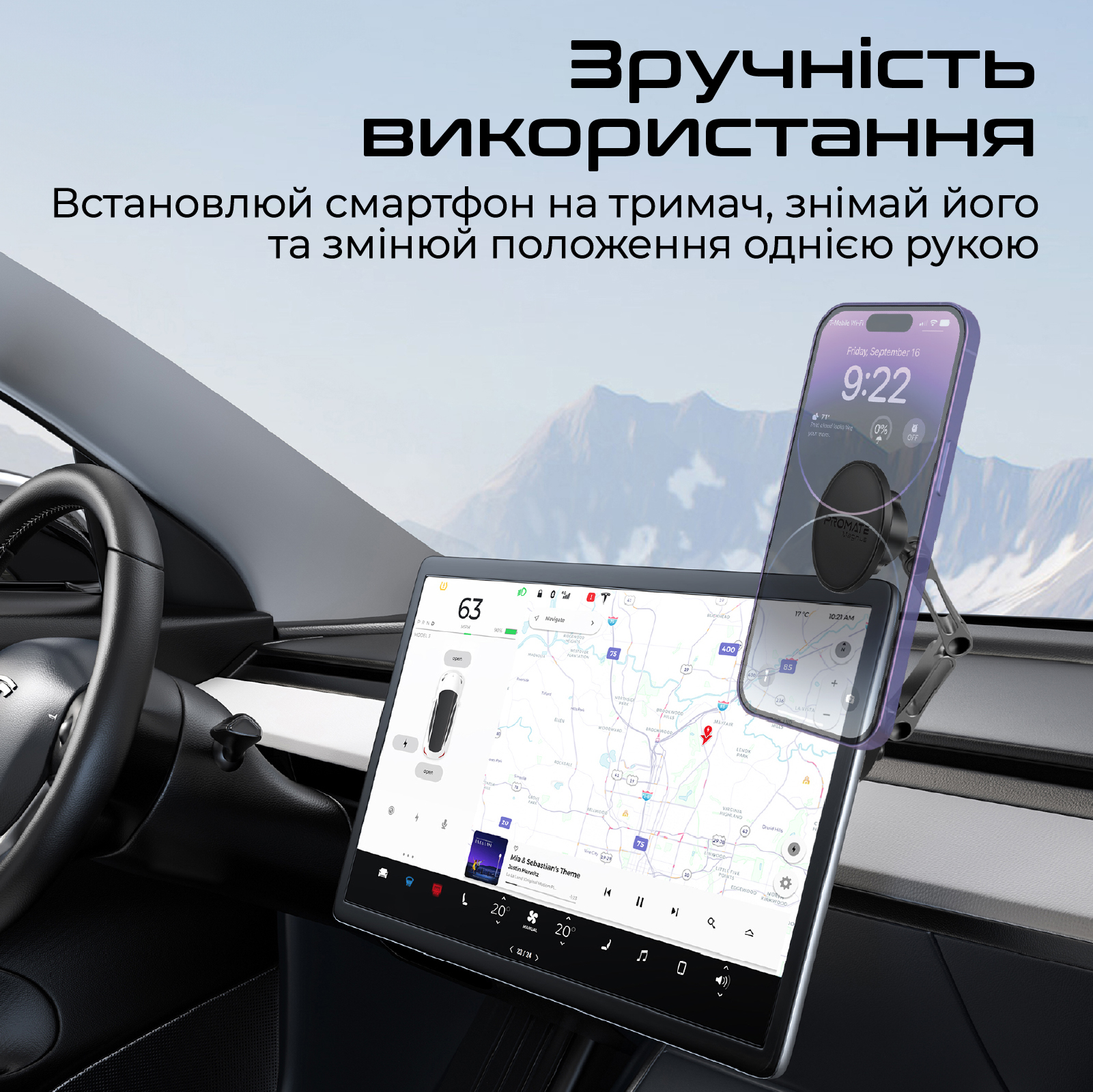 Металевий кронштейн забезпечує довговічність виробу, а накладка із софт-тач гуми захистить твій пристрій від подряпин і потертостей.
