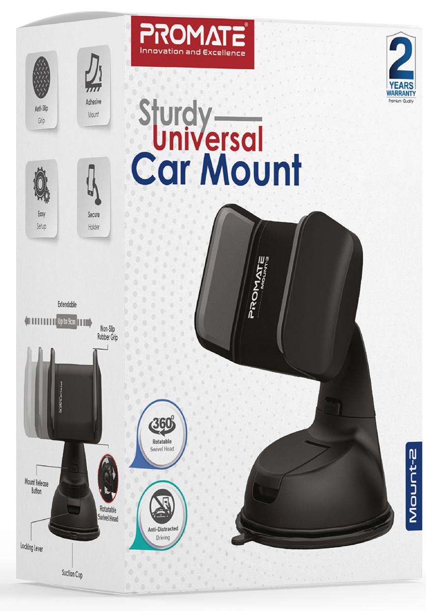 Mount-2 — покращена версія автотримача на присисальці з механічним затиском Mount від Promate. Забезпечить надійну фіксацію будь-яких пристроїв.