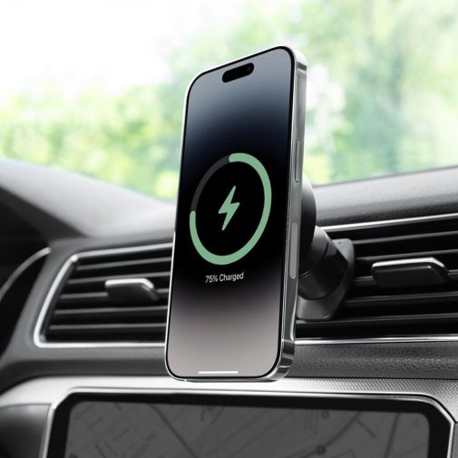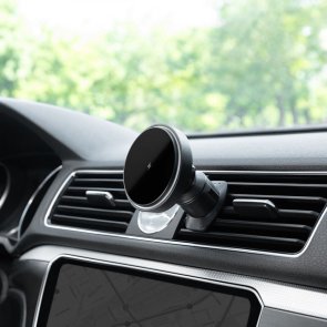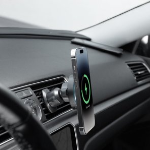 Виріб виготовлений із пластику та полікарбонату, що стильно виглядає в салоні автомобіля. Загальна потужність 15 Вт дає змогу доволі швидко зарядити телефон без жодних проводів.