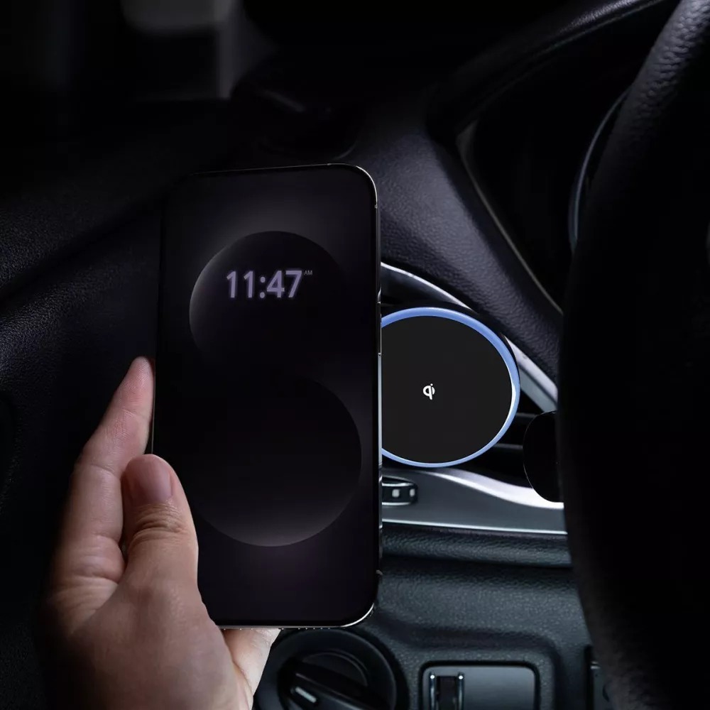 Підтримує стандарт бездротової зарядки Qi, сумісний з більшістю сучасних смартфонів. Живлення здійснюється через порт Type-C. Відстань передачі енергії до 8 мм дозволяє заряджати телефон навіть у чохлі. Завдяки магнітному кріпленню та легкому монтажу тримач особливо зручний у повсякденному користуванні, а обертова конструкція в 360° дозволяє регулювати кут огляду для максимальної ергономіки.