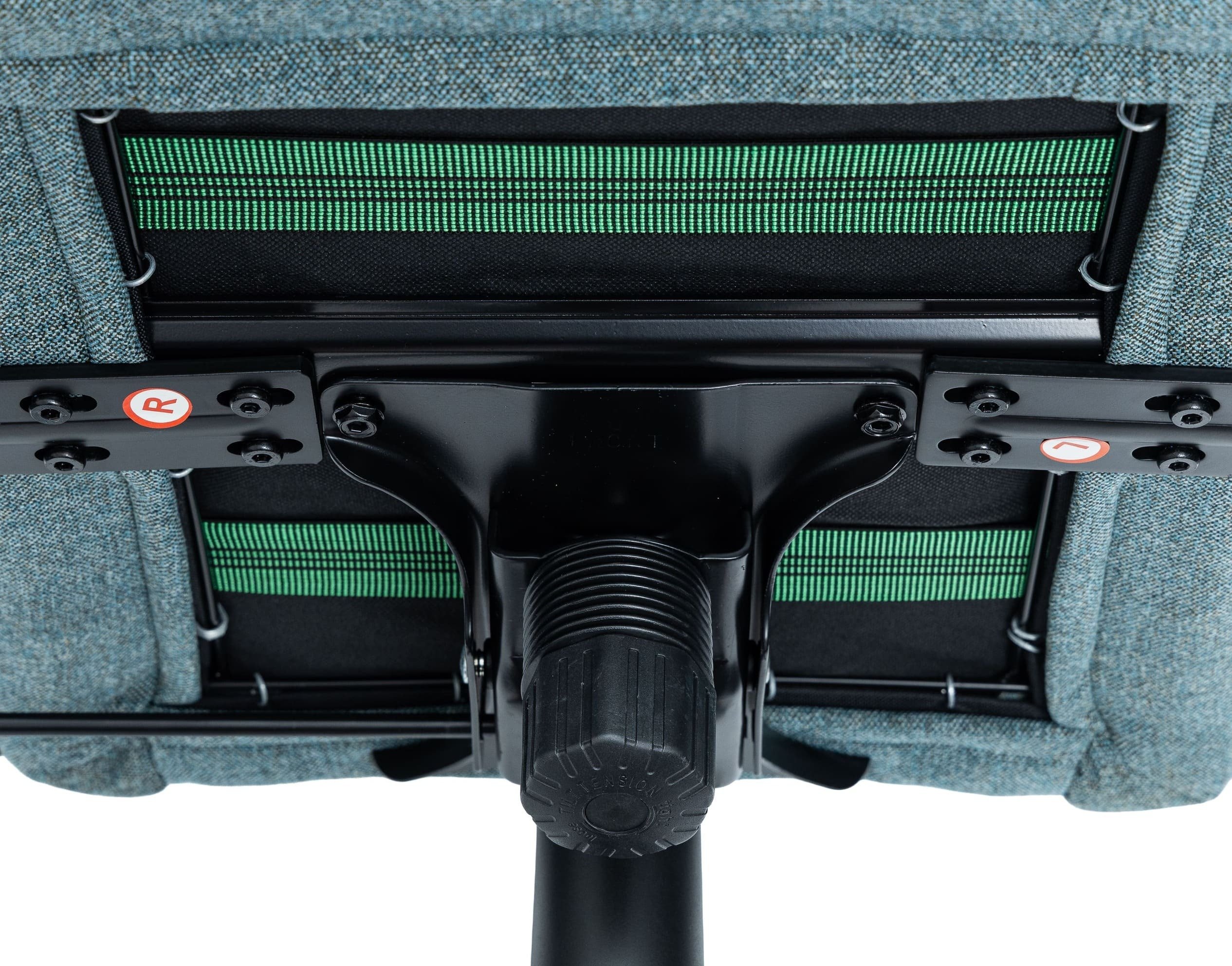 Ергономіка крісла продумана для різних позицій: спинка регулюється в діапазоні 90 - 155°, що дає змогу комфортно працювати чи розслаблятися, 2D-підлокітники налаштовуються за потребою, а механізм гойдання «метелик» допомагає зняти напругу під час перерв. Дві велюрові подушки з ефектом пам’яті забезпечують правильну опору для шиї та попереку, рівномірно розподіляючи навантаження та зменшуючи втому.