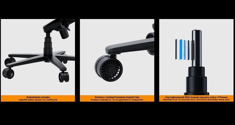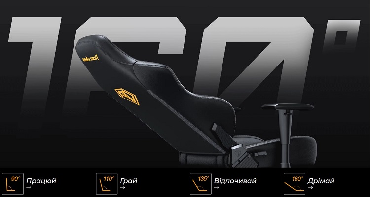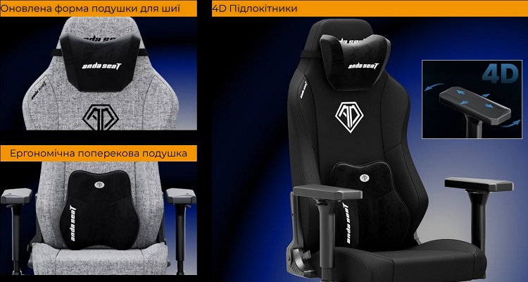 Підлокітники 4D регулюються в усіх напрямках, дозволяючи точно налаштувати положення рук. Механізм нахилу спинки до 165 градусів дає змогу розслабитися під час перерв, а пневматичний підіймач класу 4 забезпечує плавне і безпечне регулювання висоти. У комплект входять подушка для попереку та підголівник, що допомагають зменшити навантаження на хребет і шию.