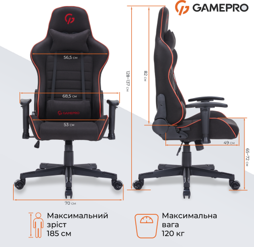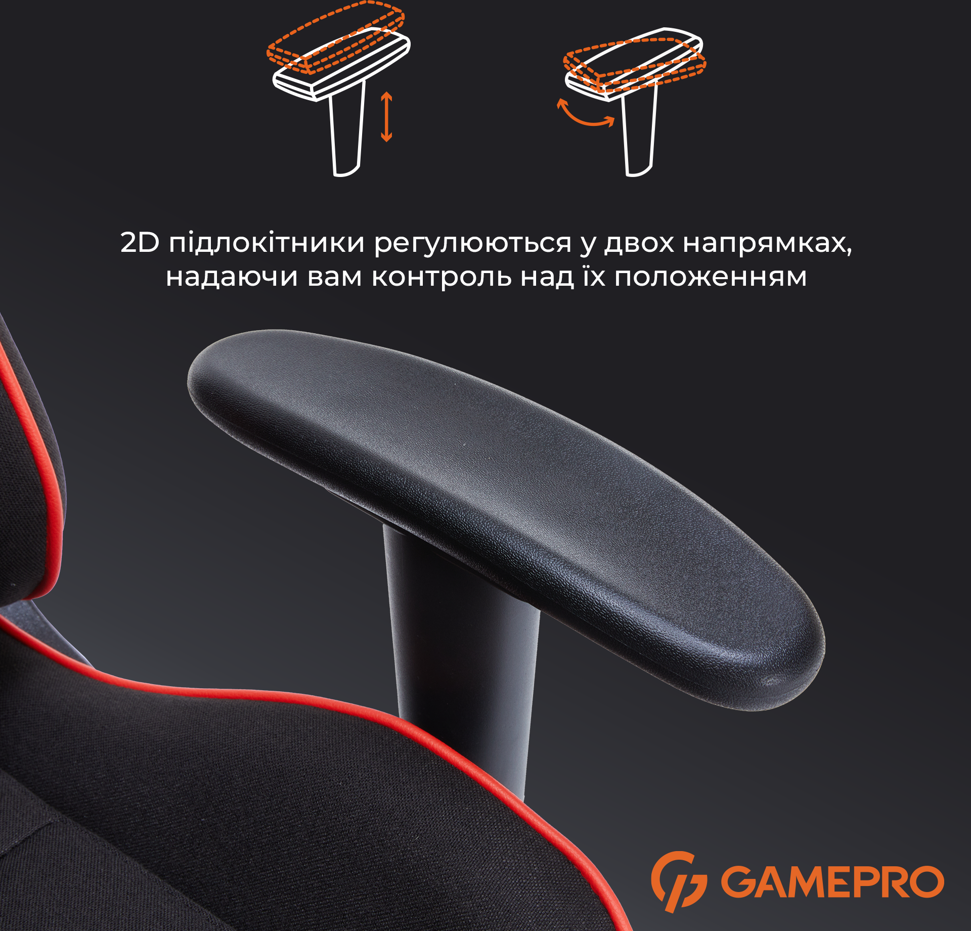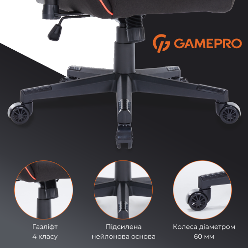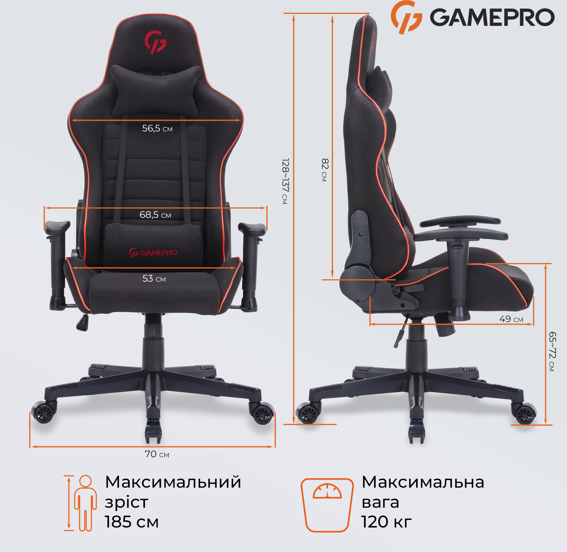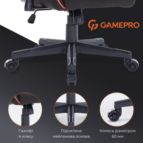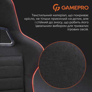 Геймерське крісло GamePro GC575FB виготовлене із високоякісних матеріалів, які гарантують довговічність та зручність. Текстильний матеріал, що покриває крісло, не тільки приємний на дотик, але і стійкий до зносу, що робить його ідеальним вибором для тривалих ігрових сесій.