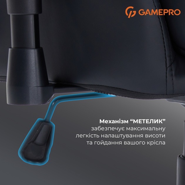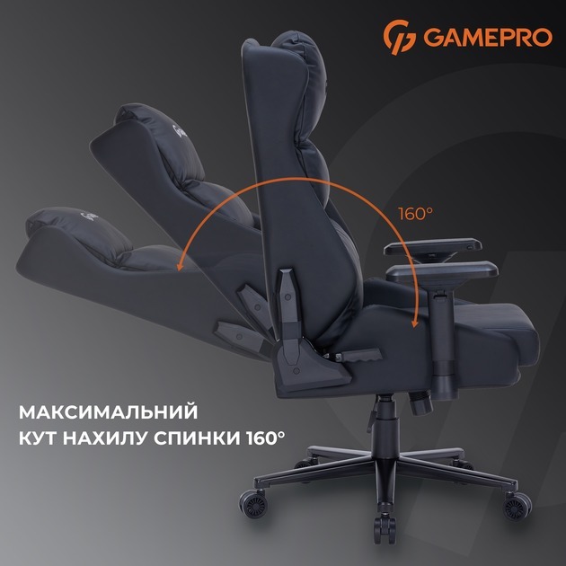 Ігрове крісло GamePro GC695 — це ергономічна модель у чорному кольорі, призначена для геймерів і користувачів, які проводять багато часу за комп'ютером, забезпечуючи комфорт під час довгих сесій гри чи роботи.