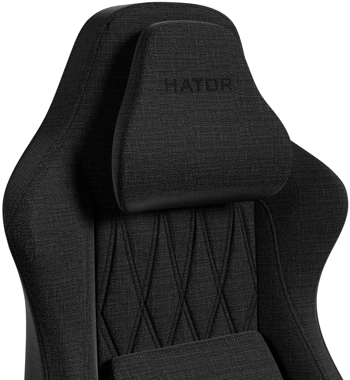 Механізм гойдання дозволяє регулювати кут нахилу спинки до 170°. Газліфт (BIFMA-сертифікований) забезпечує плавне регулювання висоти сидіння, витримуючи навантаження до 110 кг. 2D-підлокітники регулюються за висотою, адаптуючись до потреб користувача. Основа крісла — 5-променева зірка із надміцного полімеру (BIFMA-сертифікована), оснащена 65-мм колесами SoftRide із захистом для підлоги, що забезпечують плавне пересування. Магнітні бокові накладки додають естетики та легко знімаються для кастомізації. Унікальна особливість — NFC-мітка (Hator NFC custom TAG system) для збереження персональних налаштувань чи сценаріїв через сумісні пристрої.
