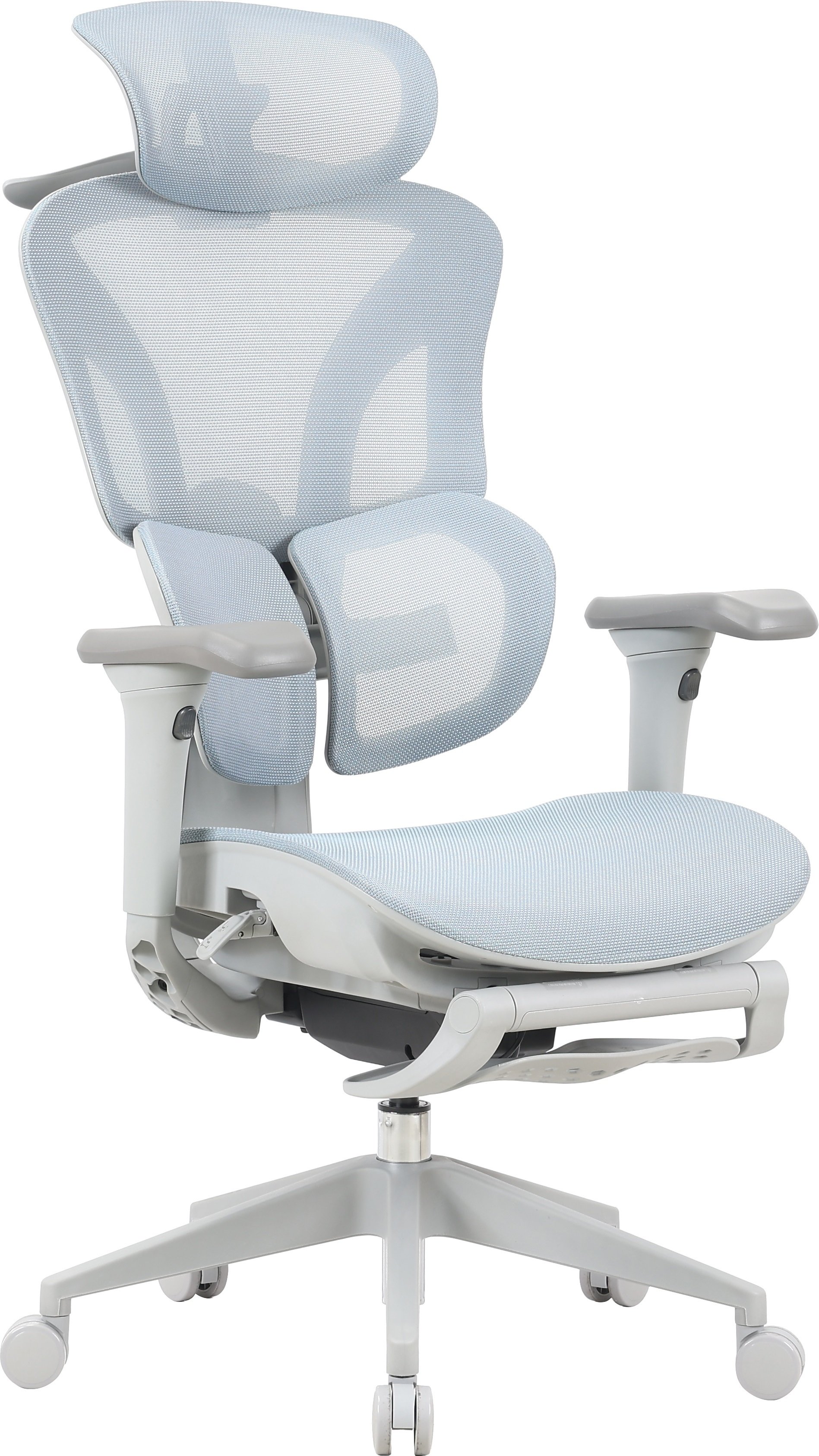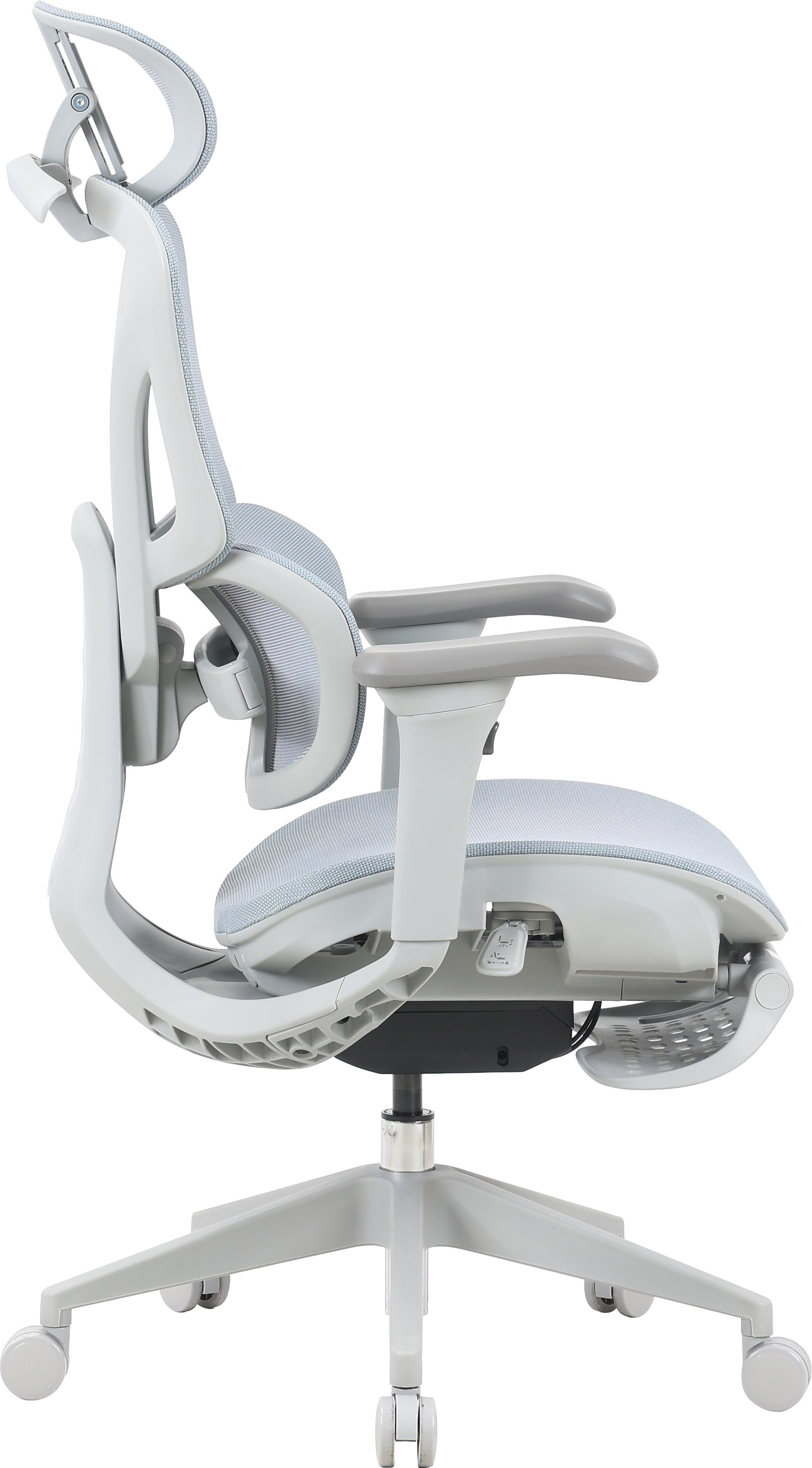 Динамічна поперекова підтримка запобігає перенапруженню спини під час тривалого сидіння, а регулювання спинки по висоті адаптує крісло до індивідуального зросту. 4D-підлокітники з м’яким поліуретановим покриттям регулюються в чотирьох напрямках: по висоті, вперед-назад, горизонтально та всередину-назовні. Регульований підголівник забезпечує додатковий комфорт, адаптуючись до особистих уподобань.