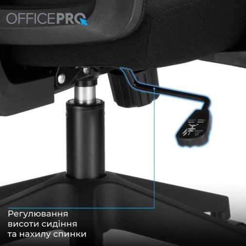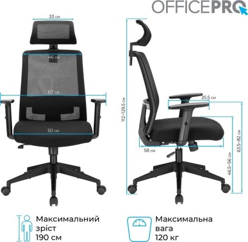 Ключова перевага OfficePro OC420B — дихаюча сітчаста спинка, яка забезпечує постійну циркуляцію повітря та запобігає перегріву навіть під час тривалого сидіння. Регульований підголівник знімає напругу з шиї та плечей, а вбудована поперекова підтримка зберігає правильне положення хребта протягом усього робочого дня. Механізм нахилу спинки до 125° дозволяє комфортно відпочити між завданнями, не встаючи з місця. Регульовані підлокітники допомагають правильно розташувати руки та зменшити навантаження на плечовий пояс. Крісло розраховане на навантаження до 120 кг і підходить для широкого кола користувачів.