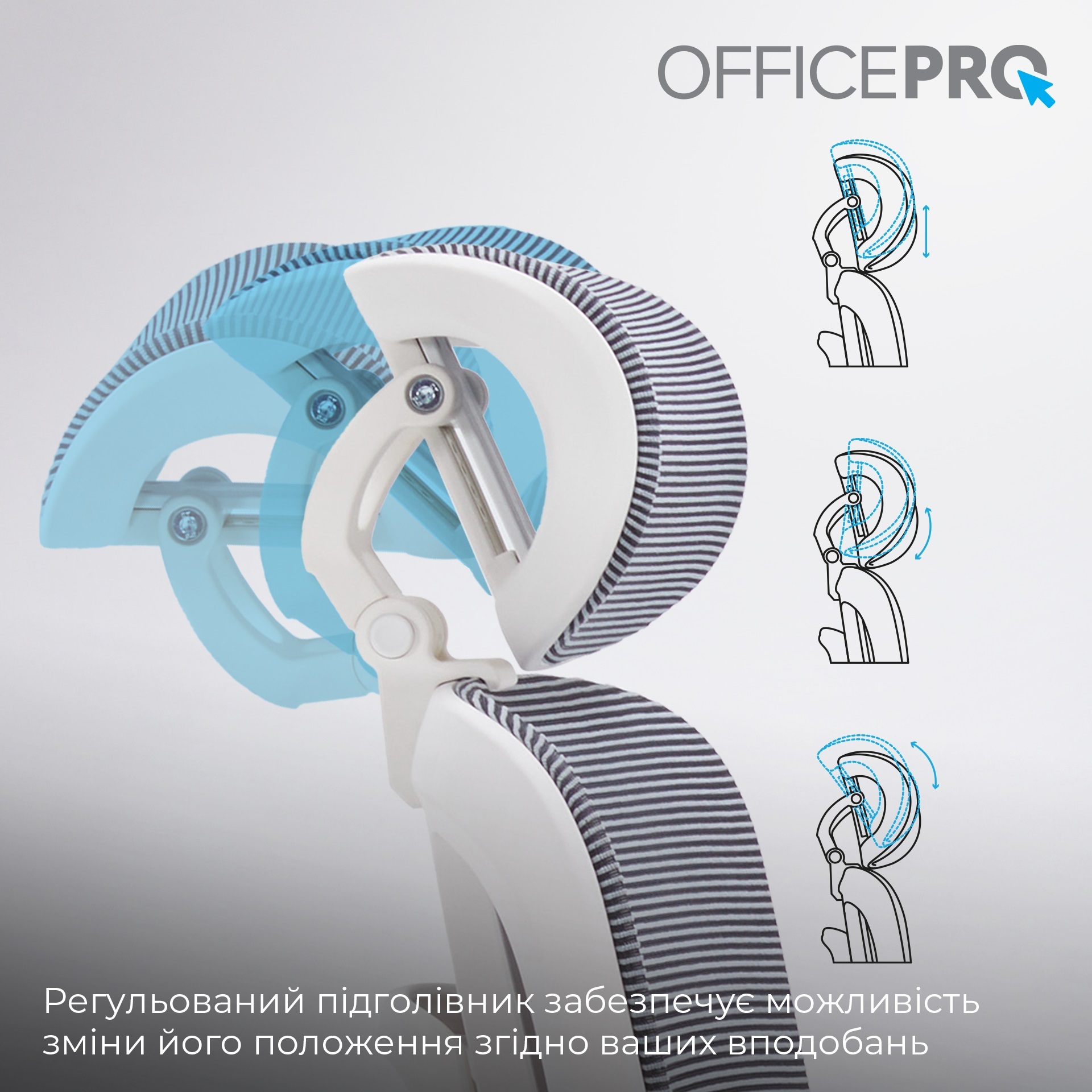 Регульована поперекова підтримка забезпечує ергономічно правильне положення спини, щоб запобігти перенапрузі при тривалому сидінні. Кут нахилу та висота підголівника регулюється для оптимального позиціювання. А завдяки регулюванню спинки за висотою ви можете налаштувати зручне положення спинки для свого зросту.